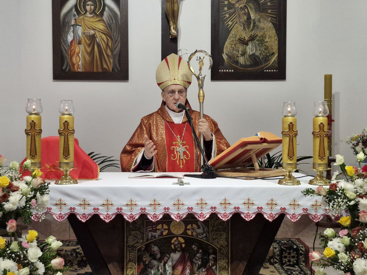 Ва ўступным слове пробашч парафіі айцец Януш Чарнамораў прывітаў гасцей і ўзгадаў шэраг цудоўных прычын для сумеснай сустрэчы ў нараўлянскім касцёле Узвышэння Святога Крыжа. Сярод іх 35-годдзе адраджэння каталіцкай парафіі ў Нароўлі, абрад удзялення сакрамэнту канфірмацыі і сумесная малітва з арцыбіскупам Тадэвушам Кандрусевічам.