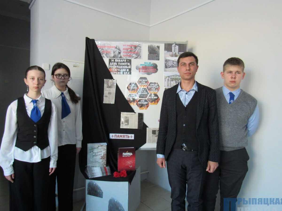 В учреждениях образования Наровлянщины прошли единые уроки памяти, посвященные трагедии в деревне Ола — одной из самых страшных и масштабных по числу жертв в истории Беларуси времен Великой Отечественной войны.