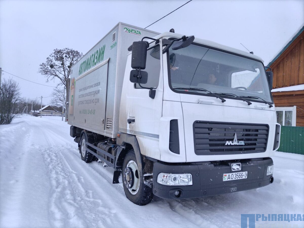 Несмотря на обильные снегопады автомагазин участка «Наровлянский» ТУП «Припятский Альянс» к своим покупателям в деревню Конотоп пришел по расписанию.