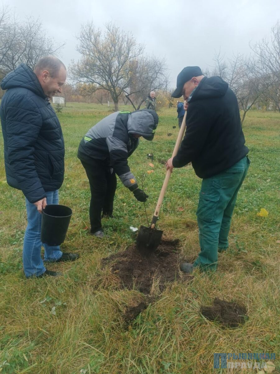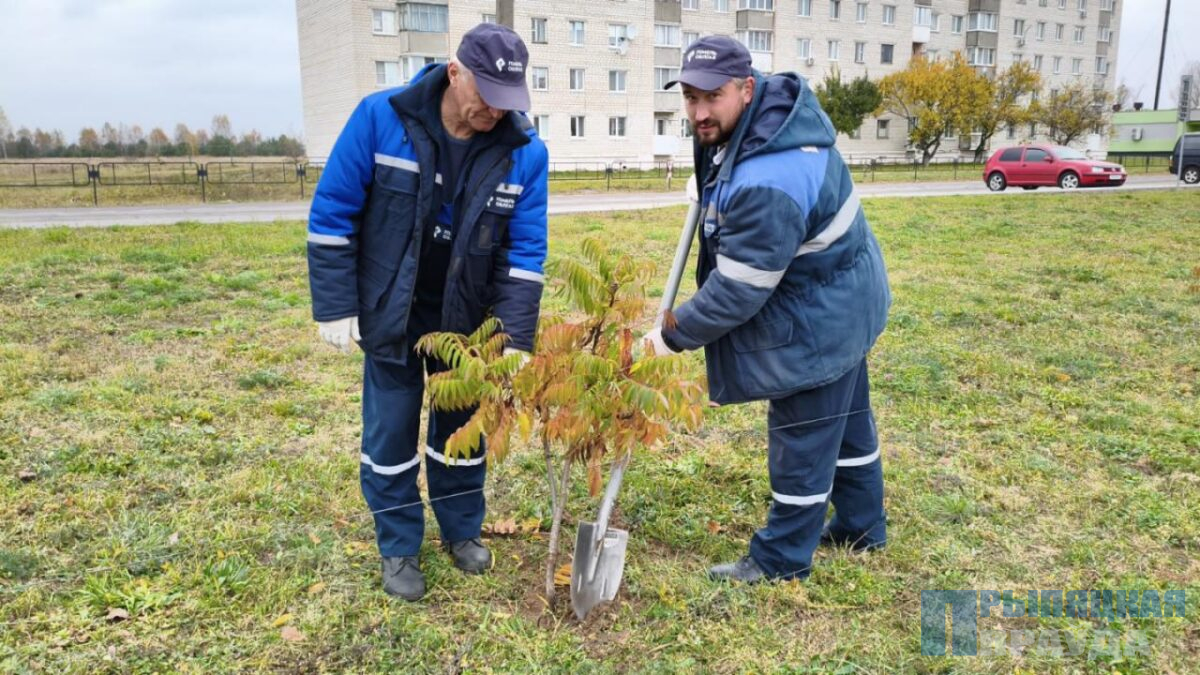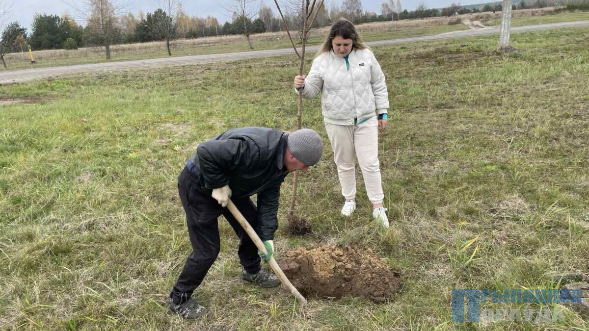 Полным ходом шла посадка деревьев вдоль территории городского стадиона. Здесь за дело взялись работники районного физкультурно-спортивного клуба, Наровлянского РГС.