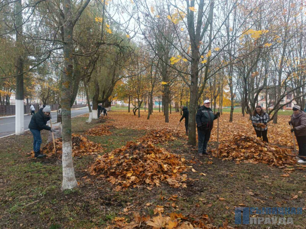 Работы ведутся одновременно на множестве площадок, охватывая разные уголки города. Труженики ОАО «Красный Мозырянин», вооружившись граблями и метелками, дружно наводят порядок в сквере, прилегающем к предприятию, усердно подметая дорожки и убирая опавшую листву.