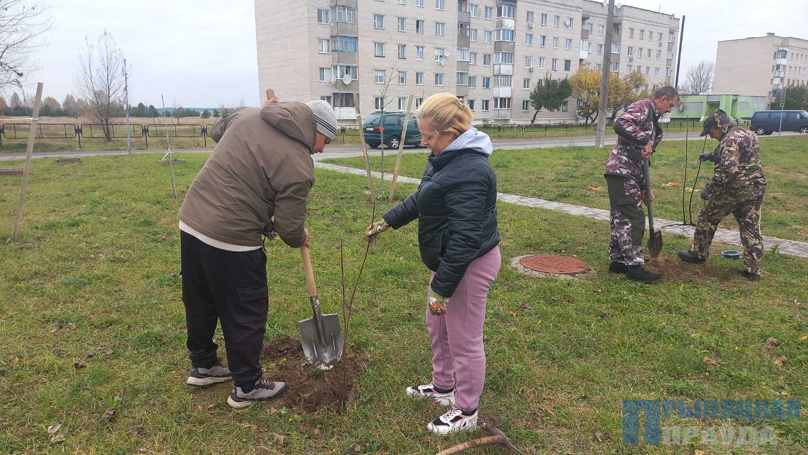 Полным ходом шла посадка деревьев вдоль территории городского стадиона. Здесь за дело взялись работники районного физкультурно-спортивного клуба, Наровлянского РГС.