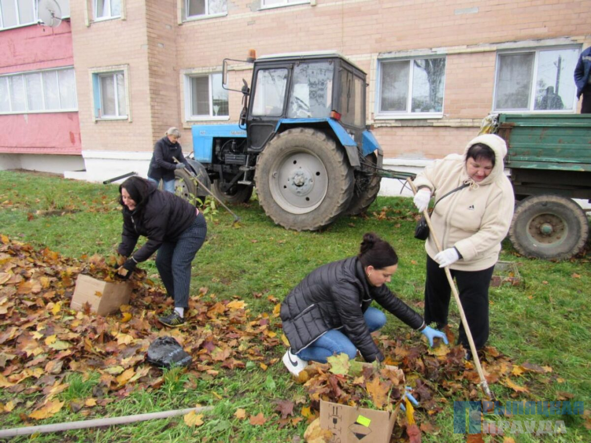 Наровляне с энтузиазмом убирали опавшую листву. Главные улицы Наровли, Октябрьская и Ленина, оживились и мгновенно преображались на глазах от массовой работы людей, пожелавших внести свой посильный вклад в благое дело.