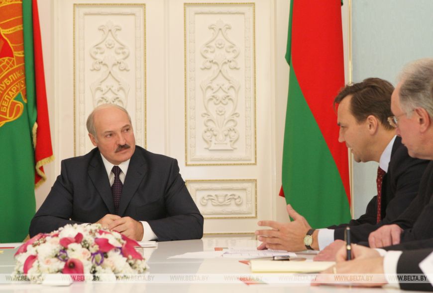 Александр Лукашенко и министр иностранных дел Польши Радослав Сикорский, ноябрь 2010 года