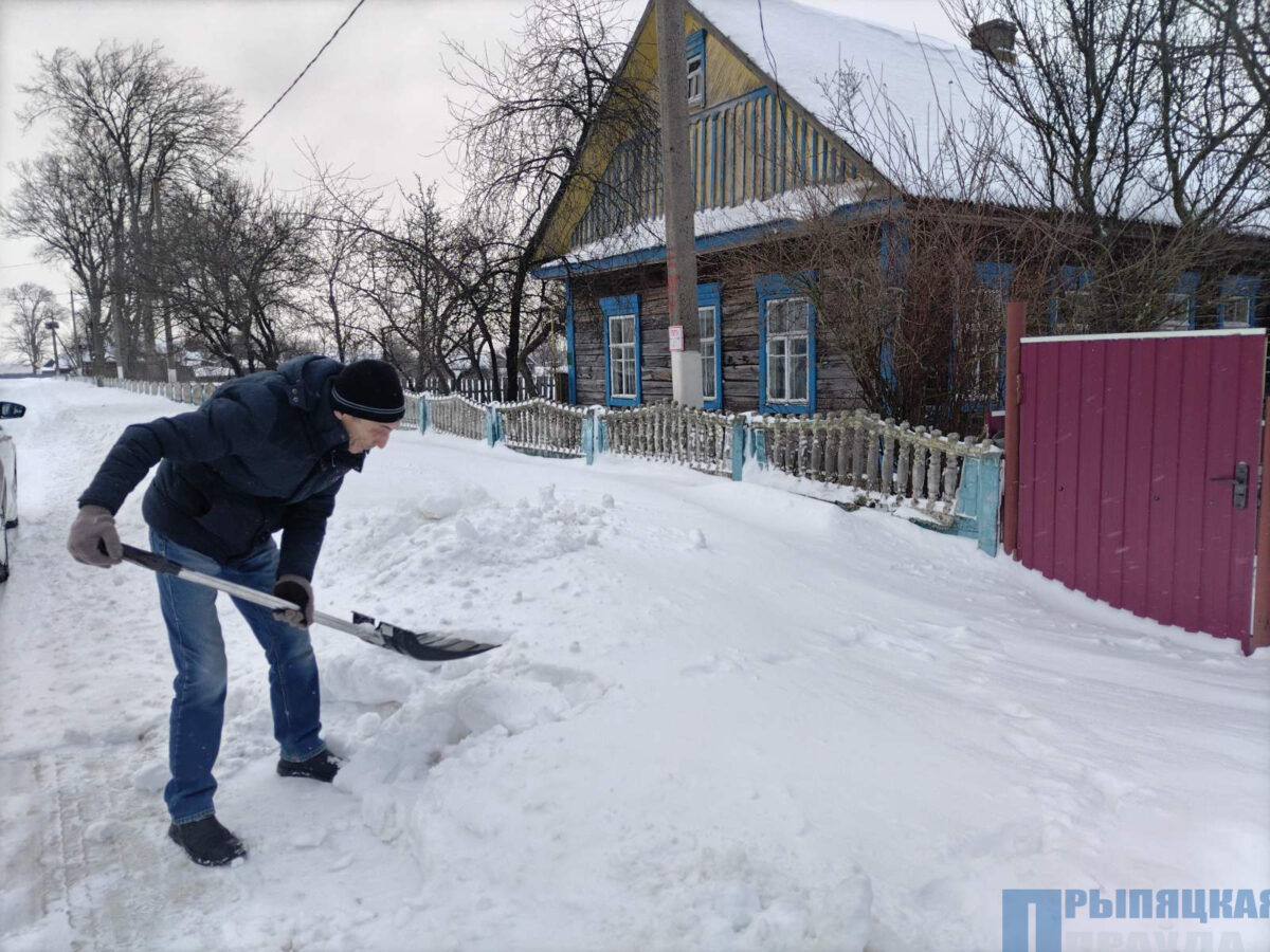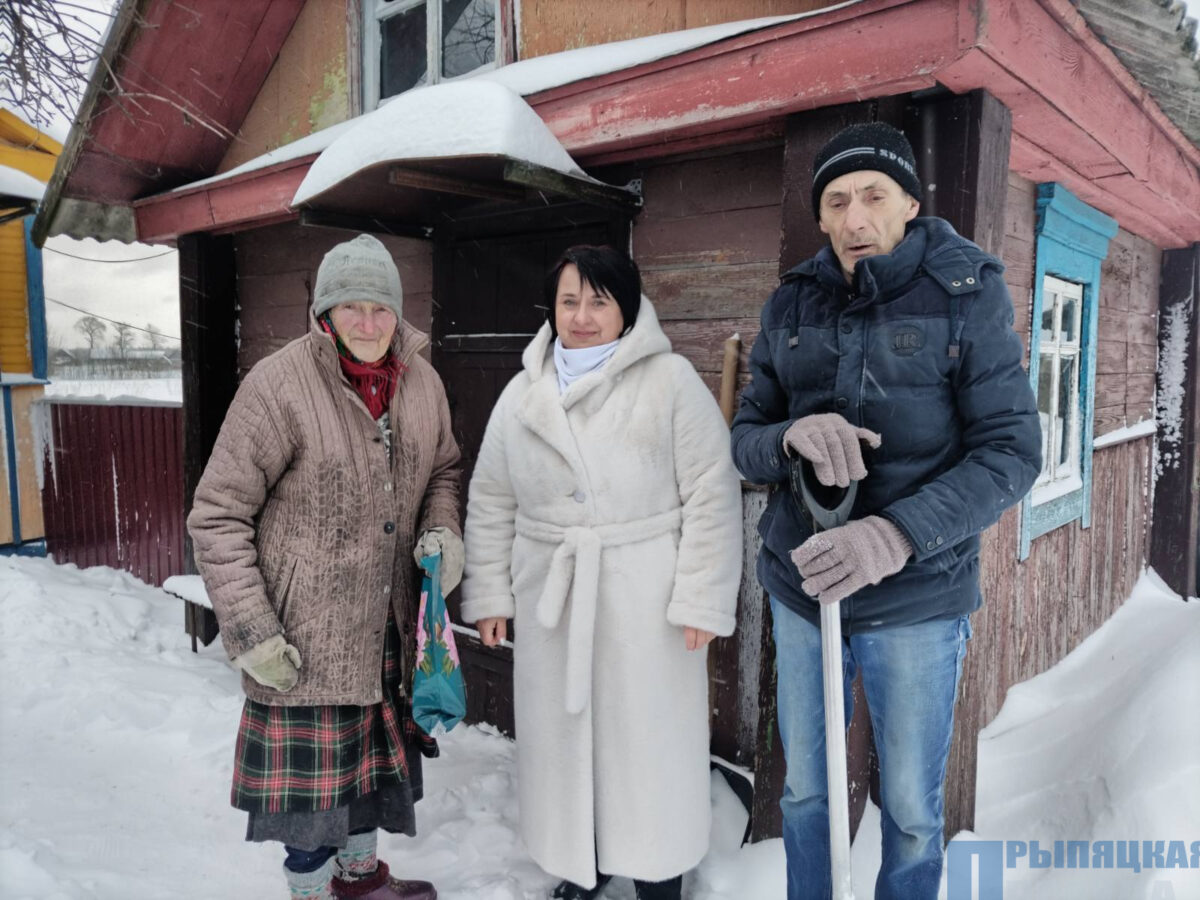 В рамках акции «От всей души» работники сельисполкома не только привезли приятные слова и подарки, но и расчистили дорожки к домам от снега.