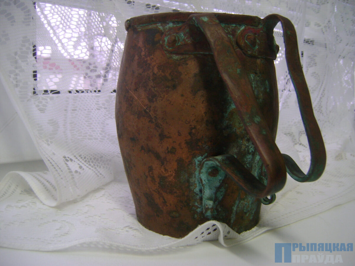 В заброшенном погребе в деревне Калиничи много лет назад была найдена медная кружка. На первый взгляд, в ней не было ничего особенного. Сделана она из меди, объемом около двух литров. Единственное, чем отличалась от привычной кружки, это большим размером и наличием двух ручек, которые были расположены непривычно для нашего восприятия — по бокам этого сосуда, — а так, что расстояние между ними было сантиметров пять.