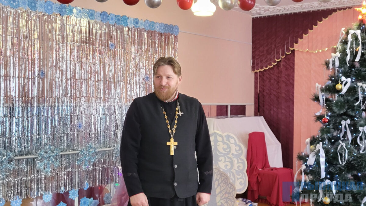 С теплыми напутствиями и поздравлениями к воспитанникам и педагогическому коллективу обратился настоятель местного храма Иоанна Богослова, отец Дмитрий. Священник поздравил всех с наступающим Новым годом и Рождеством, напомнив о важности доброты, милосердия и мира в семье, а также вручил сладости.