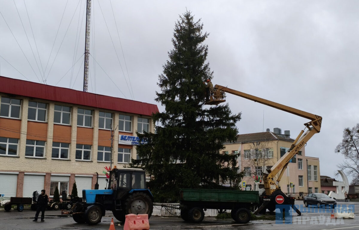 Все сильнее ощущается наступление Нового года. Главный атрибут праздника — елка — появилась на площади Ленина в райцентре. Лесную красавицу установили работники КУП «Жилкомстрой».