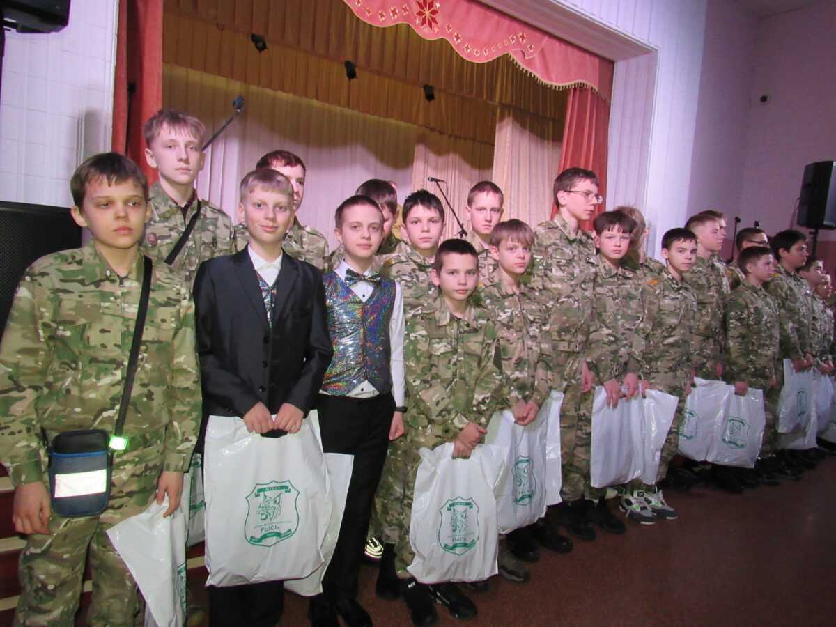 Во время праздничного мероприятия были вручены подарки участникам военно-патриотического клуба «Рысь-Наровля».