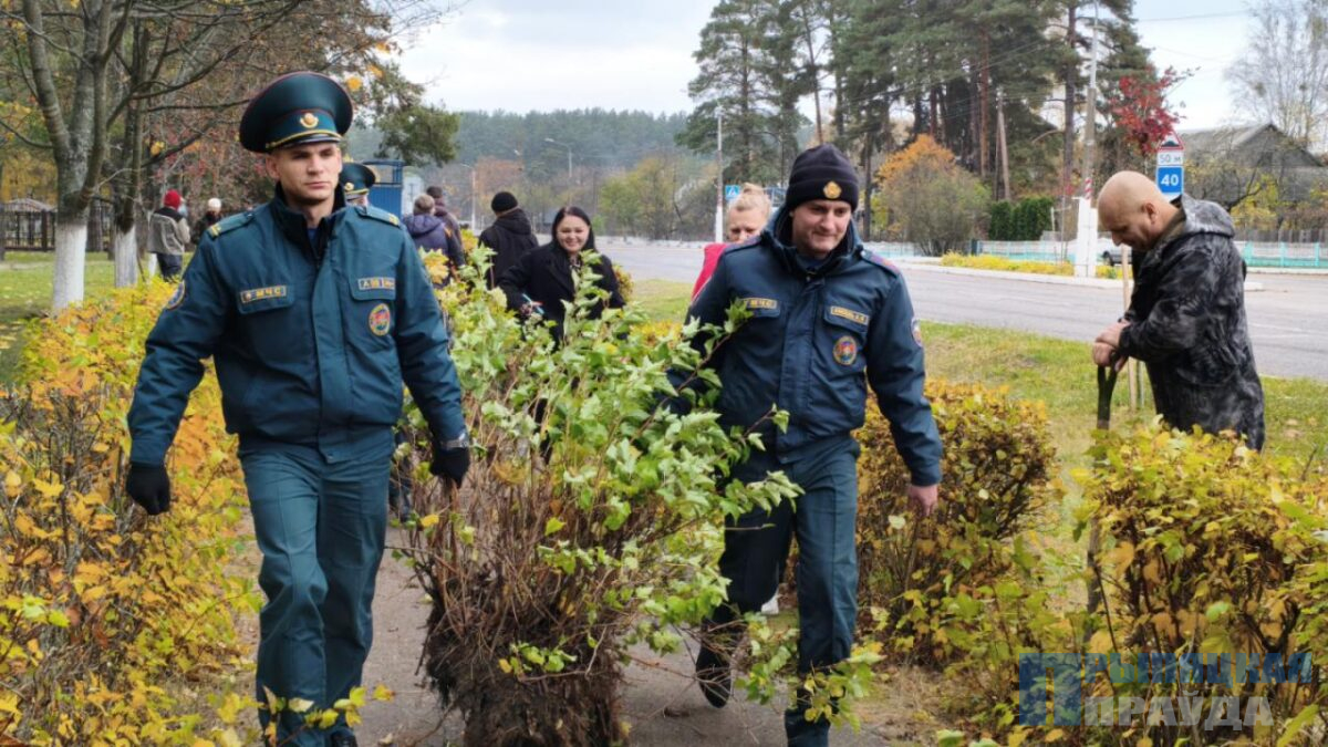 Работники районного исполнительного комитета, районного отдела по чрезвычайным ситуациям трудились на благоустройстве территории возле районной больницы. Вдоль тротуара они дружно высаживали молодые кустарники, которые в скором времени создадут уютную атмосферу.