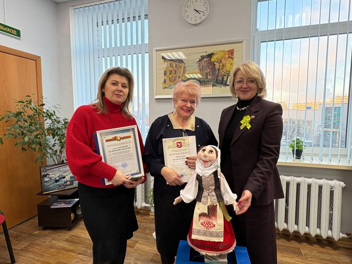 Продолжается визит представителей Наровлянского района в Петербург по случаю празднования 82-й годовщины полного освобождения от блокады Ленинграда. В рамках визита школе № 250 Кировского района, где расположена экспозиция, посвященная нашему легендарному земляку, от СШ № 3 им. Героя Советского Союза А.Г. Корзуна передана кукла, символизирующая Год белорусской женщины, объявленный в Беларуси.