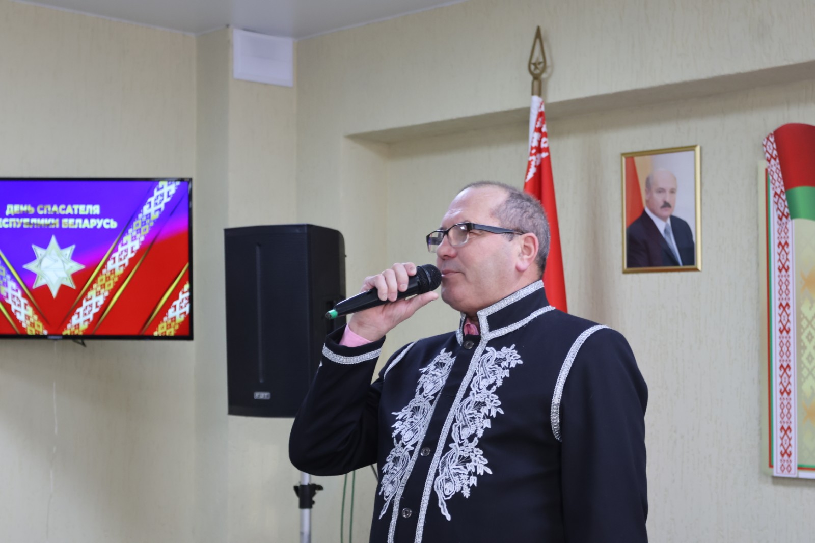 Подарком стало выступление артистов районного дома культуры. Перед спасателям выступили Владимир Пролоников, Валентина Ятченко, Елена Драго и Мария Сизенок .