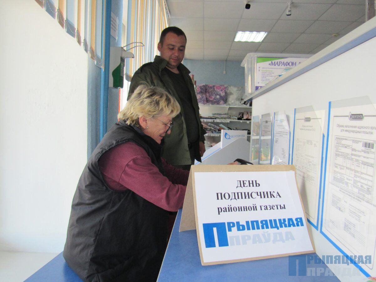 Оформляла подписку на газету «Прыпяцкая праўда» почтальон Светлана Макаренко. На почту спешили те, кто много лет выписывает районку и с интересом узнает из нее местные новости. Подписчики охотно делились своими мнениями о районном печатном издании, а в благодарность за поддержку любимой газеты получали на память небольшой сувенир.