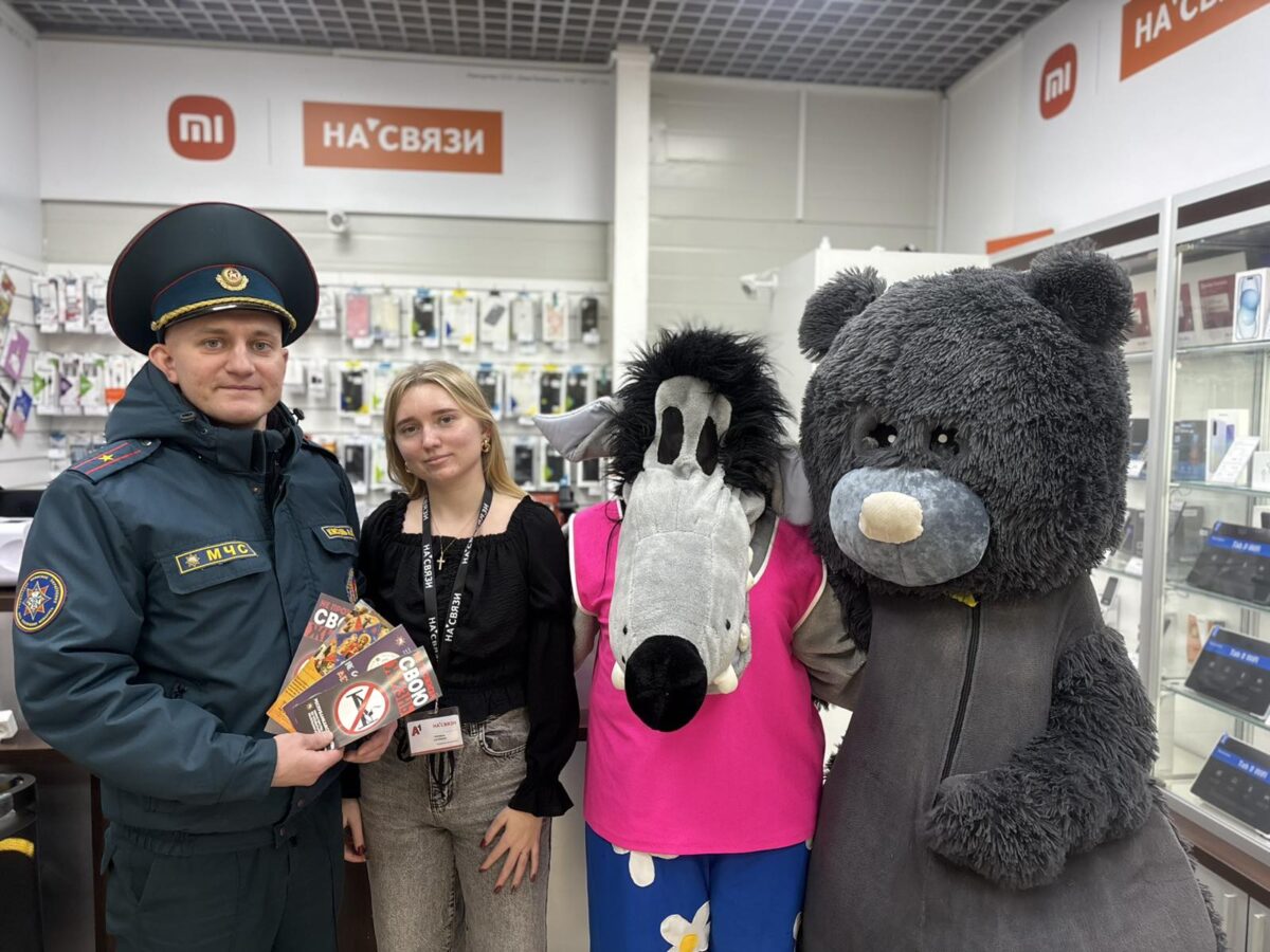 На входе в магазин ростовые куклы раздавали посетителям магазина памятки и буклеты, которые содержат важные рекомендации по безопасности.