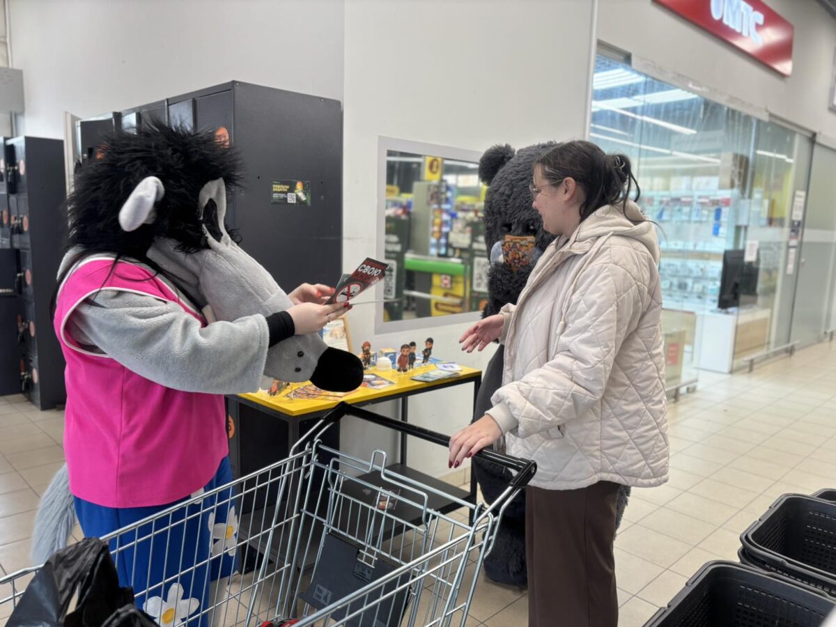 На входе в магазин ростовые куклы раздавали посетителям магазина памятки и буклеты, которые содержат важные рекомендации по безопасности.