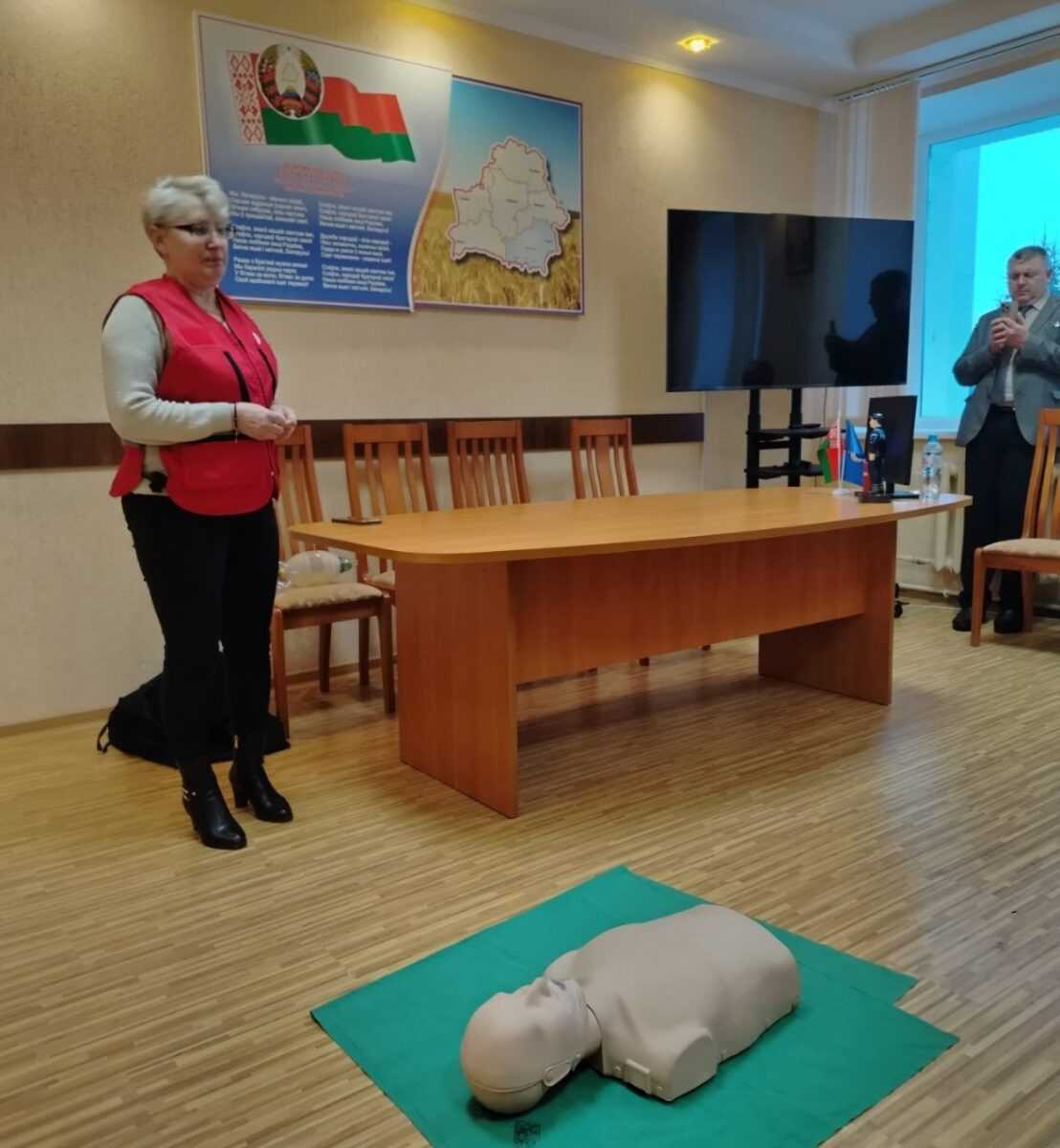 Волонтером Красного Креста, фельдшером выездной бригады скорой медицинской помощи Наровлянской ЦРБ Владимиром Ковальчуком проведен мастер-класс по оказанию первой доврачебной помощи. Все желающие смогли закрепить полученные знания на манекене.