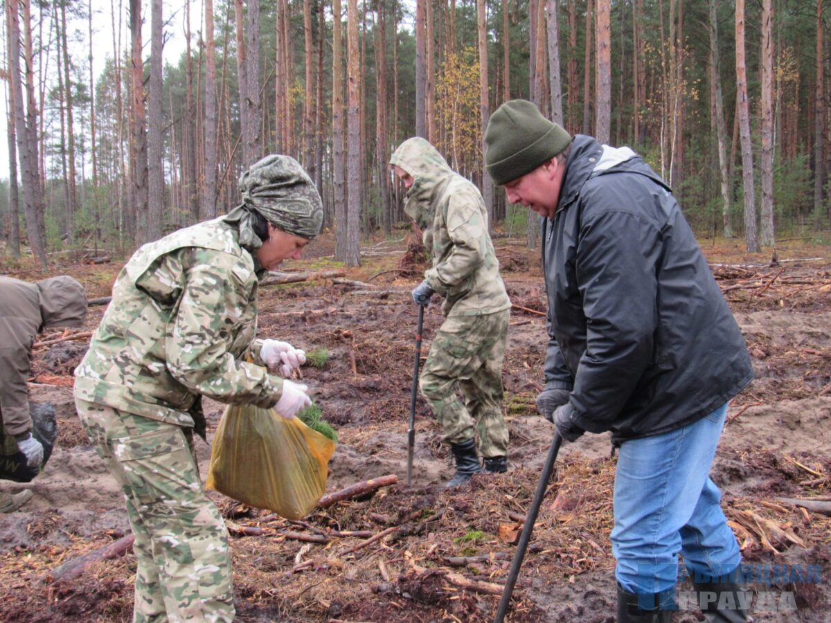 Все старательно высаживали сеянцы сосны обыкновенной и березы повислой, которые в ближайшем будущем станут частью нового зеленого массива.