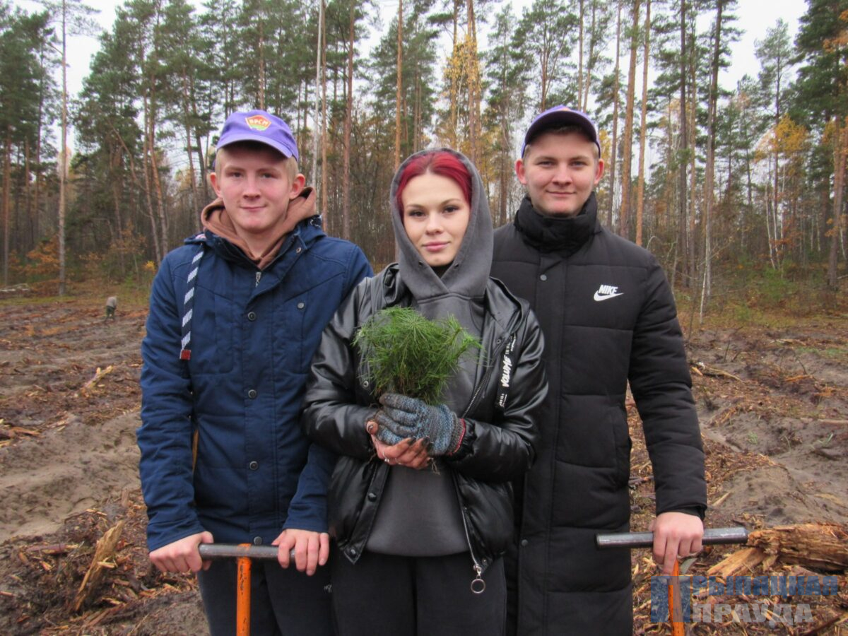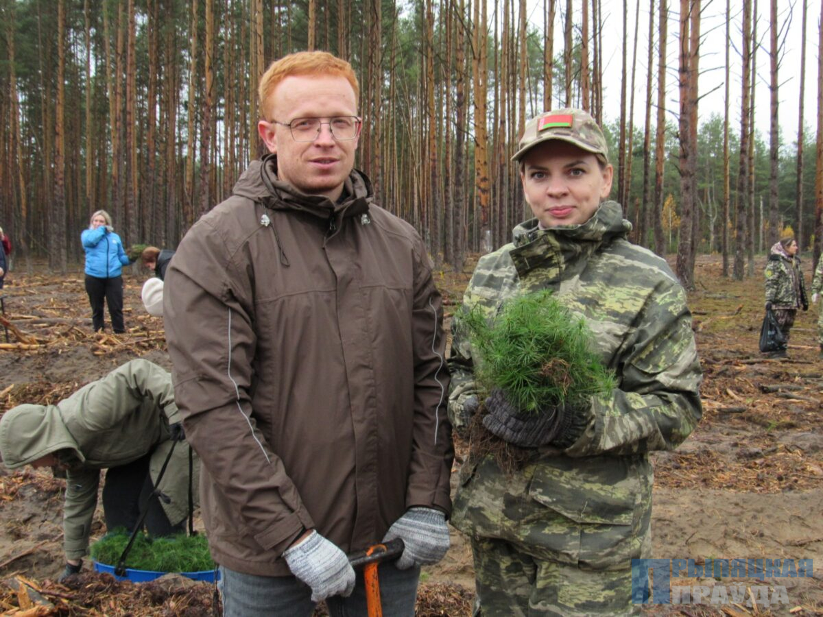 После проведенного инструктажа по технике безопасности и о правилах посадки лесных культур на территории Наровлянского лесничества Наровлянского спецлесхоза вблизи агрогородка Завойть в числе многочисленной команды активистов с энтузиазмом помогали возрождать лес первый заместитель председателя райисполкома Марина Альховик, первый секретарь РК ОО «БРСМ» Виктория Синкевич.