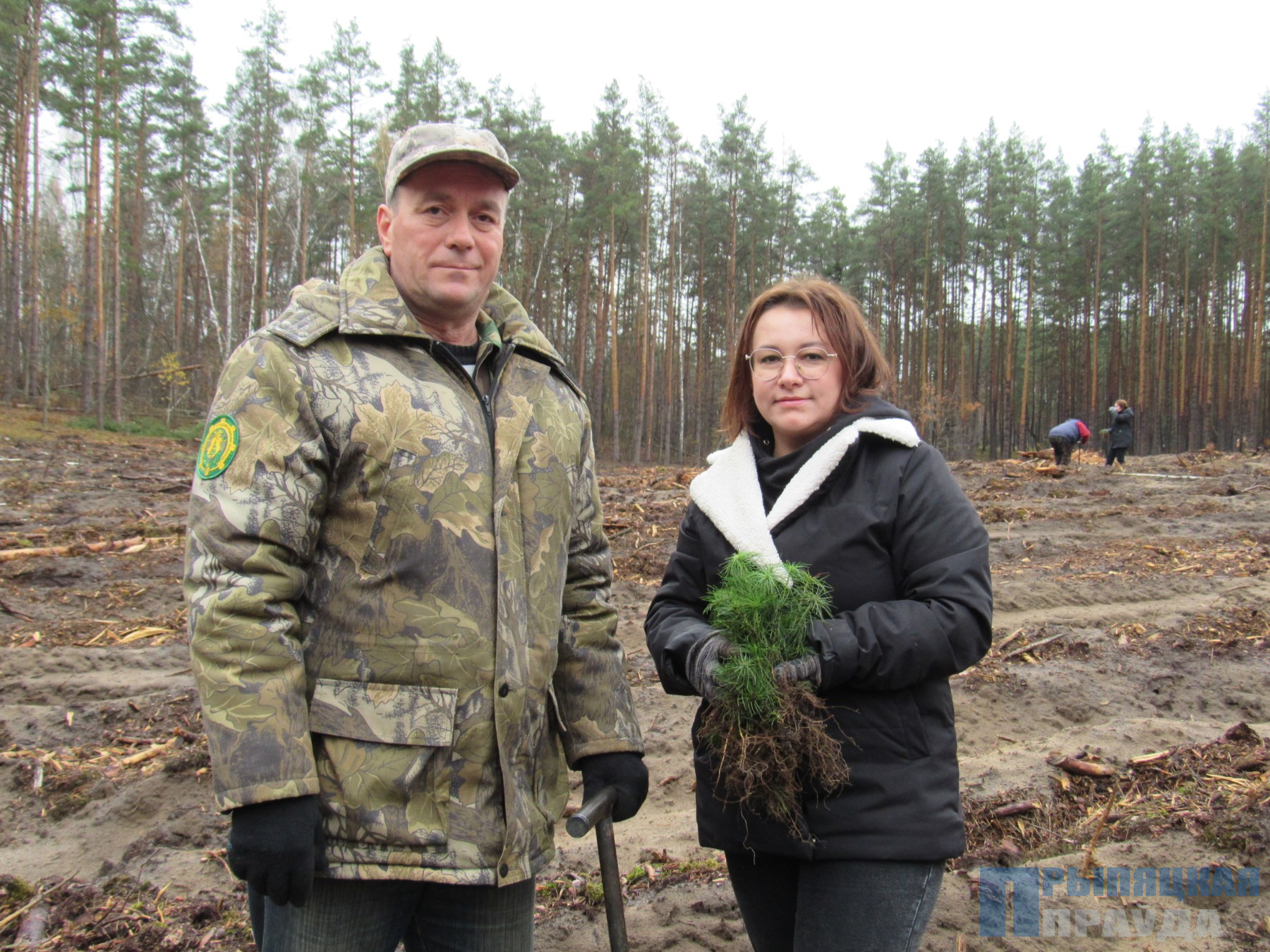 Все старательно высаживали сеянцы сосны обыкновенной и березы повислой, которые в ближайшем будущем станут частью нового зеленого массива.