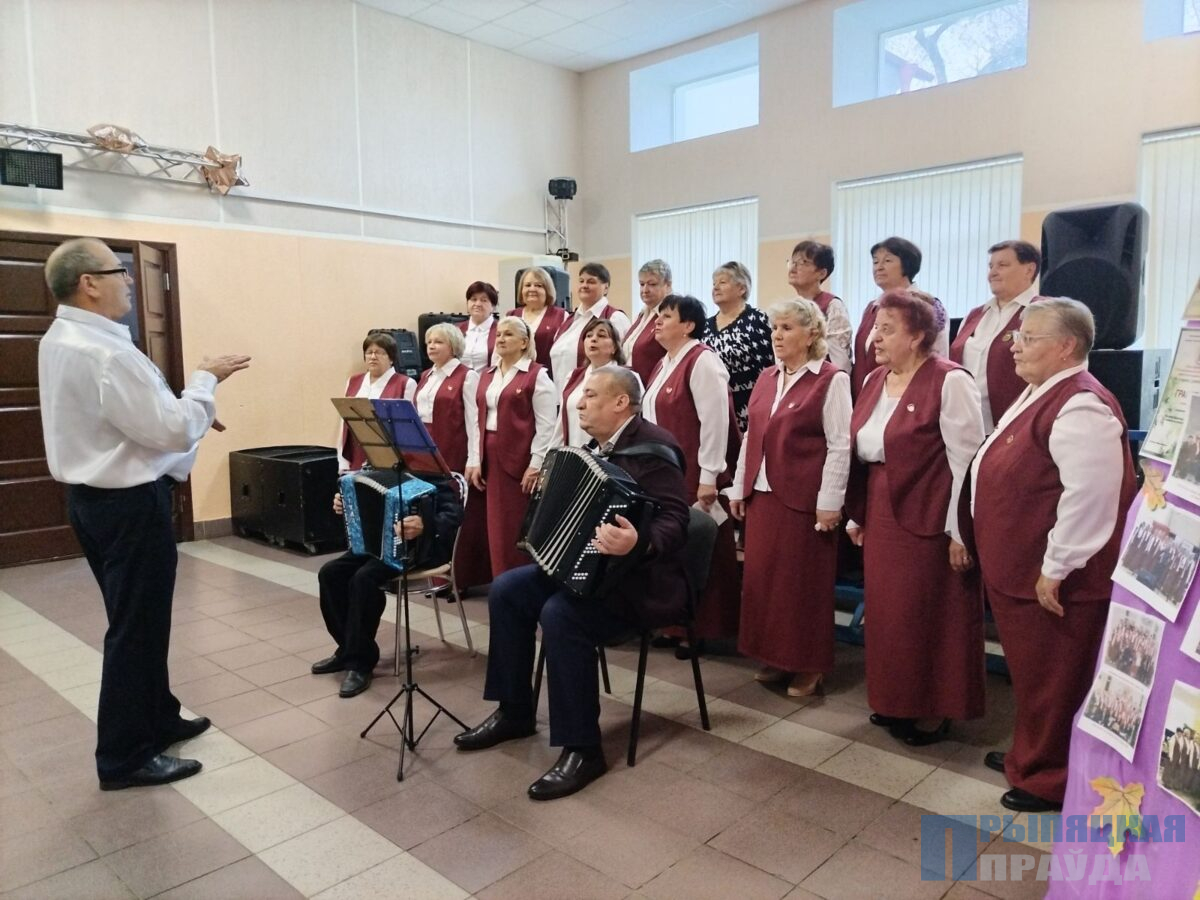 Народный хор ветеранов порадовал присутствующих своими песнями различной тематики. Песни о Родине, о Наровлянщине, о Победе в Великой Отечественной войне тронули до глубины души. Слова признательности за истинный талант солистам высказала Наталья Кузьменкова, отметив, что эти глубоко уважаемые люди умеют создавать нам праздник. К ее словам присоедился и Иван Грушевский. Вспомнили, конечно же, и тех, кто внес значимый вклад в развитие и становление коллектива и в знак благодарности вручили им цветы.