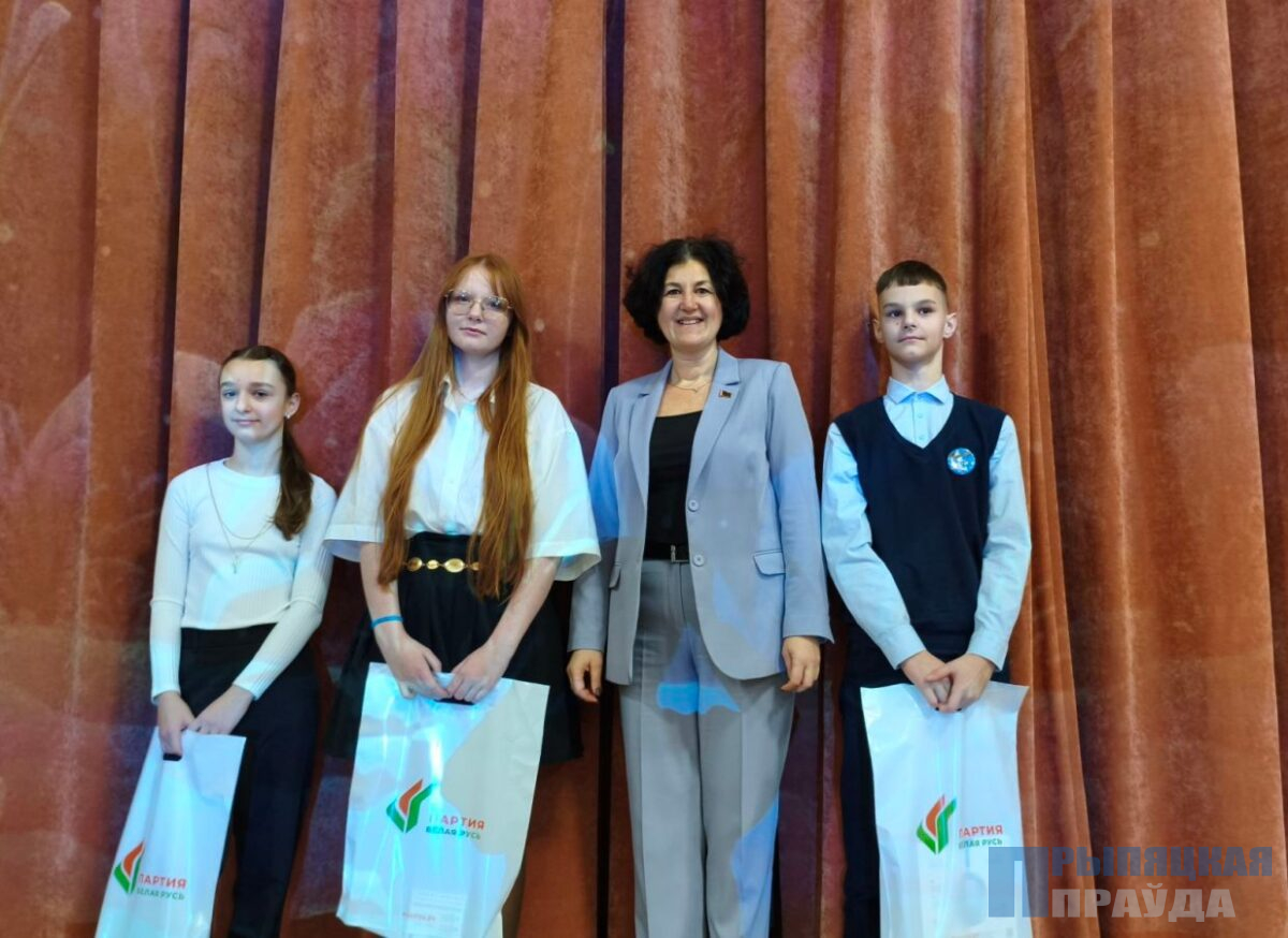 От Наровлянского районного отделения Гомельской области Белорусской партии «Белая Русь» подарки получили учащиеся гимназии Регина Кислицкая, Виктория Чернова и учащийся СШ № 2 им. И.М. Шаврея Илья Романенко. Их успехи в учебе и творчестве отмечены заслуженными наградами.